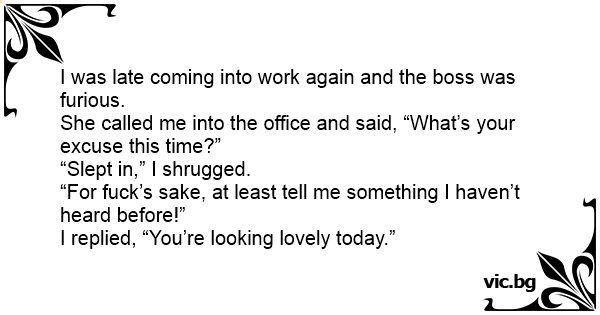 She called me into the office and said, “What’s your excuse this time?”