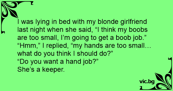 I was lying in bed with my blonde girlfriend last night when she said, “I think my воовs are too small, I’m going to get a воов job.”