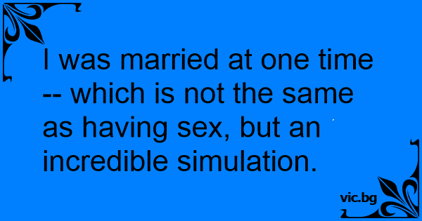 I was married at one time -- which is not the same as having sеx, but an incredible simulation.