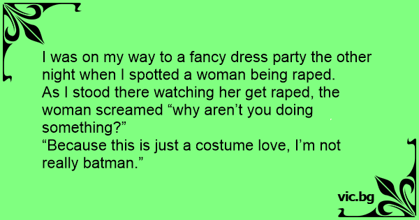 I was on my way to a fancy dress party the other night when I spotted a woman being rареd.