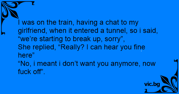 I was on the train, having a chat to my girlfriend, when it entered a tunnel, so i said, “we’re starting to break up, sorry”,