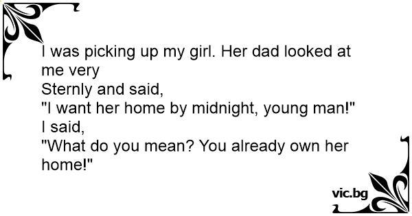 "I want her home by midnight, young man!"