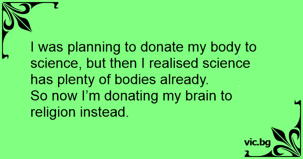 I was planning to donate my body to science, but then I realised science has plenty of bodies already.