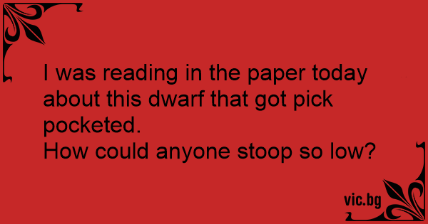 I was reading in the paper today about this dwarf that got pick pocketed.