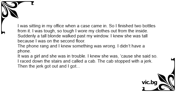 Suddenly a tall blonde walked past my window. I knew she was tall because I was on the second floor.