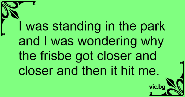 I was standing in the park and I was wondering why the frisbe got closer and closer and then it hit me.