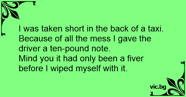 I was taken short in the back of a taxi.