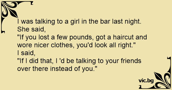 I was talking to a girl in the bar last night. She said,