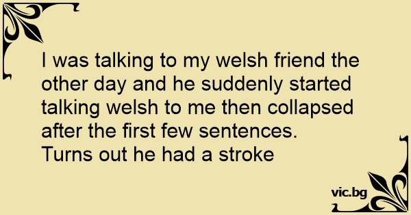 I was talking to my welsh friend the other day and he suddenly started talking welsh to me then collapsed after the first few sentences.