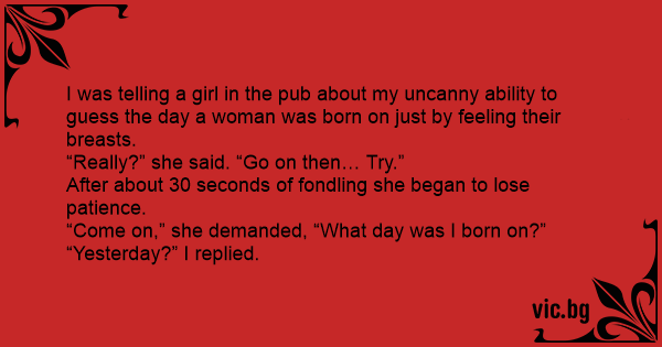 I was telling a girl in the pub about my uncanny ability to guess the day a woman was born on just by feeling their вrеаsтs.