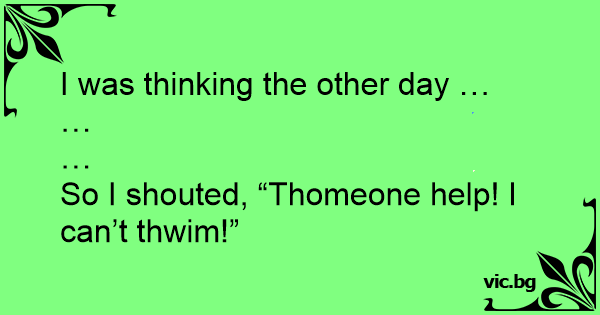 So I shouted, “Thomeone help! I can’t thwim!”