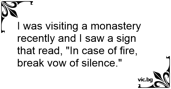 I was visiting a monastery recently and I saw a sign that read, "In case of fire, break vow of silence."