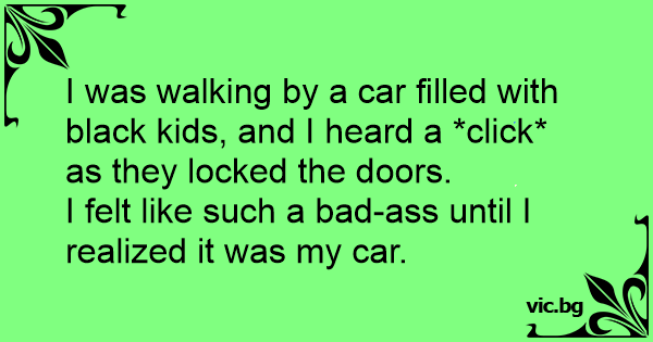 I was walking by a car filled with black kids, and I heard a *click* as they locked the doors.