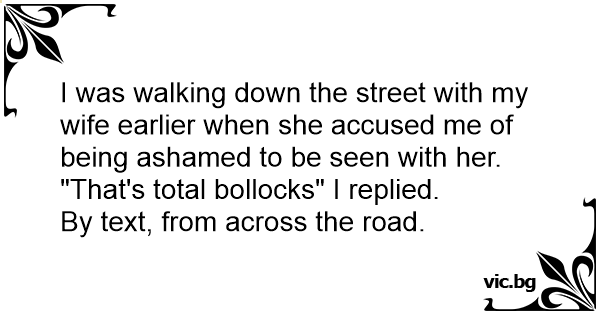 I was walking down the street with my wife earlier when she accused me of being ashamed to be seen with her.