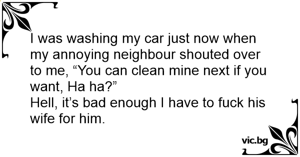 I was washing my car just now when my annoying neighbour shouted over to me, “You can clean mine next if you want, Ha ha?”