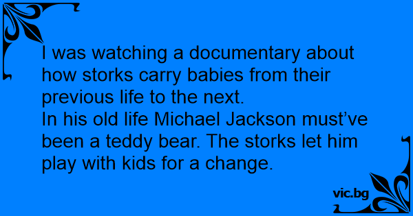 I was watching a documentary about how storks carry babies from their previous life to the next.