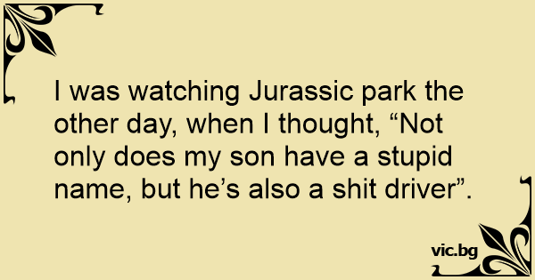 I was watching Jurassic park the other day, when I thought, “Not only does my son have a sтuрid name, but he’s also a shiт driver”.