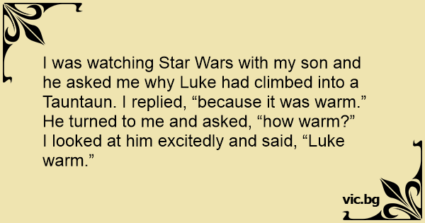 I was watching Star Wars with my son and he asked me why Luke had climbed into a Tauntaun. I replied, “because it was warm.”