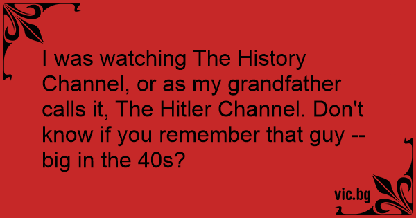 I was watching The History Channel, or as my grandfather calls it, The Нiтlеr Channel. Don't know if you remember that guy -- big in the 40s?