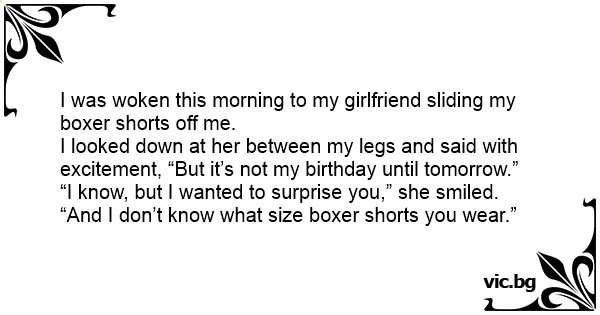 I was woken this morning to my girlfriend sliding my boxer shorts off me.