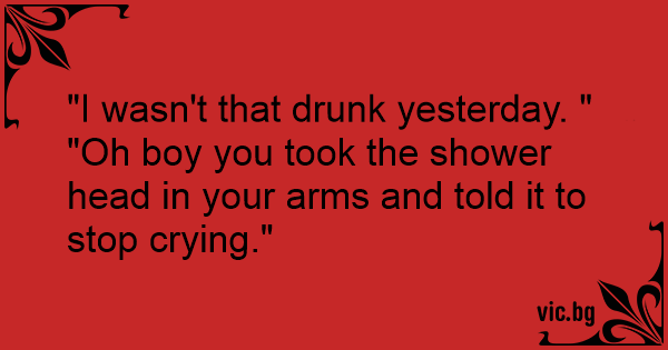 "Ich war doch gar nicht so betrunken gestern." "Alter, du hast der Dusche gesagt, sie soll aufhören zu weinen."