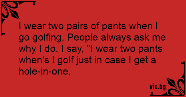 I wear two pairs of pants when I go golfing. People always ask me why I do. I say, "I wear two pants when's I golf just in case I get a hole-in-one.