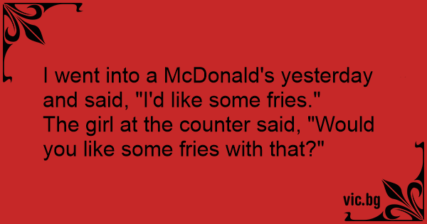 I went into a McDonald's yesterday and said, "I'd like some fries."