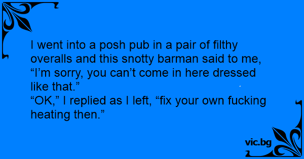 I went into a posh pub in a pair of filthy overalls and this snotty barman said to me,