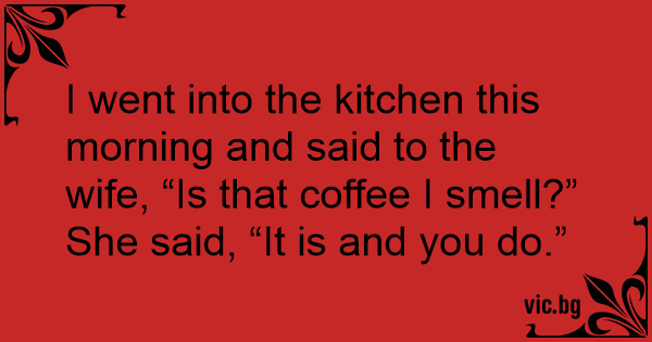 I went into the kitchen this morning and said to the wife, “Is that coffee I smell?”