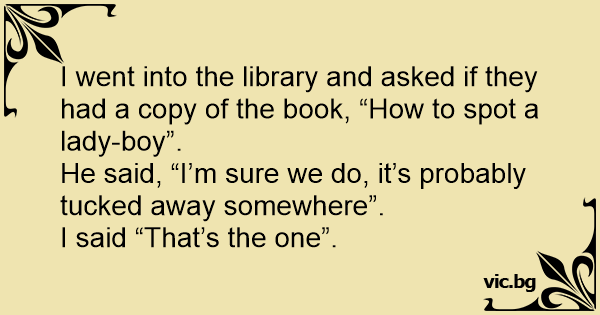 I went into the library and asked if they had a copy of the book, “How to spot a lady-boy”.