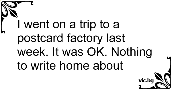I went on a trip to a postcard factory last week. It was OK. Nothing to write home about
