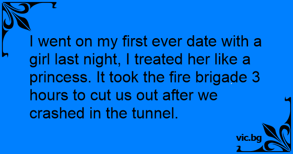 I went on my first ever date with a girl last night, I treated her like a princess. It took the fire brigade 3 hours to cut us out after we crashed in the tunnel.