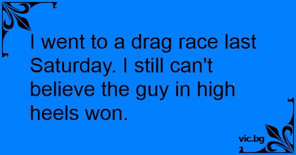 I went to a drag race last Saturday. I still can't believe the guy in high heels won.