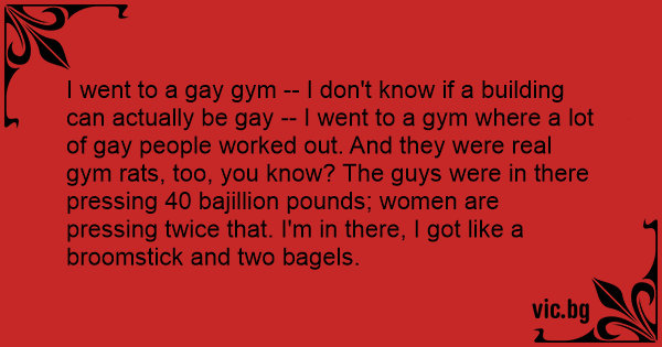 I went to a gаy gym -- I don't know if a building can actually be gаy -- I went to a gym where a lot of gаy people worked out. And they were real gym rats, too, you know? The guys were in there pressing 40 bajillion pounds; women are pressing twice that. I'm in there, I got like a broomstick and two bagels.