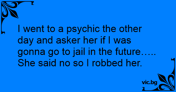 I went to a psychic the other day and asker her if I was gonna go to jail in the future….. She said no so I robbed her.
