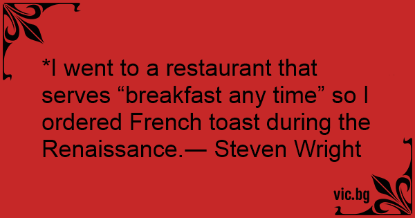 *I went to a restaurant that serves “breakfast any time” so I ordered French toast during the Renaissance.― Steven Wright