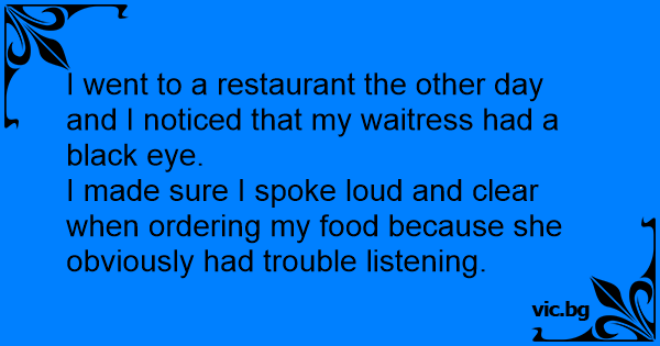 I went to a restaurant the other day and I noticed that my waitress had a black eye.