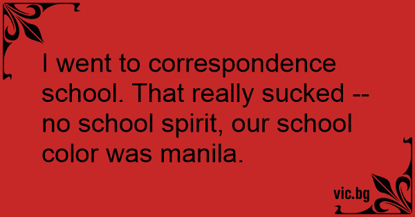 I went to correspondence school. That really suскеd -- no school spirit, our school color was manila.
