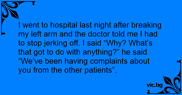 I went to hospital last night after breaking my left arm and the doctor told me I had to stop jerking off. I said “Why? What’s that got to do with anything?” he said “We’ve been having complaints about you from the other patients”.