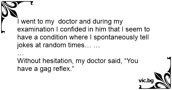 I went to my doctor and during my examination I confided in him that I seem to have a condition where I spontaneously tell jokes at random times… …