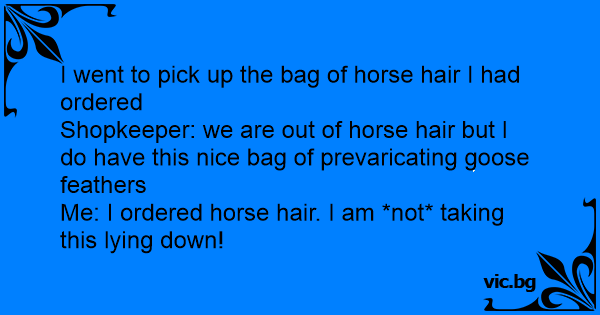 Me: I ordered horse hair. I am *not* taking this lying down!
