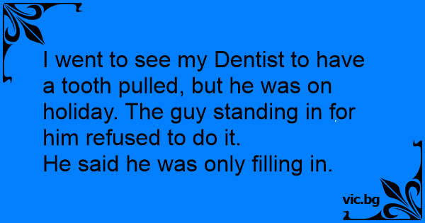 I went to see my Dentist to have a tooth pulled, but he was on holiday. The guy standing in for him refused to do it.