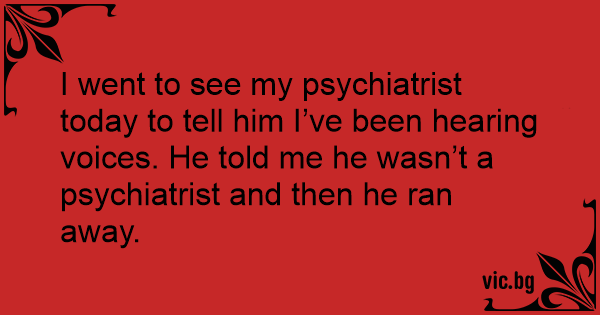 I went to see my psychiatrist today to tell him I’ve been hearing voices. He told me he wasn’t a psychiatrist and then he ran away.