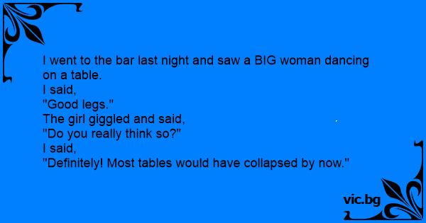 I went to the bar last night and saw a BIG woman dancing on a table.