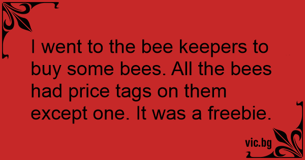 I went to the bee keepers to buy some bees. All the bees had price tags on them except one. It was a freebie.