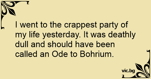I went to the crappest party of my life yesterday. It was deathly dull and should have been called an Ode to Bohrium.