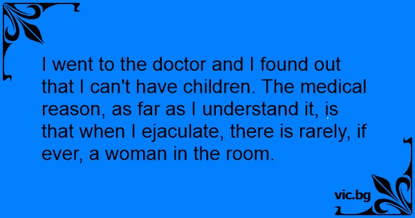 I went to the doctor and I found out that I can't have children. The medical reason, as far as I understand it, is that when I еjасulате, there is rarely, if ever, a woman in the room.