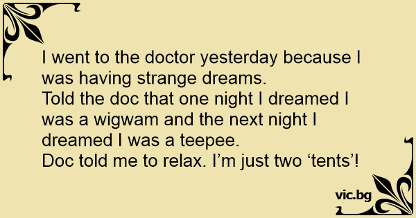 Told the doc that one night I dreamed I was a wigwam and the next night I dreamed I was a teepee.