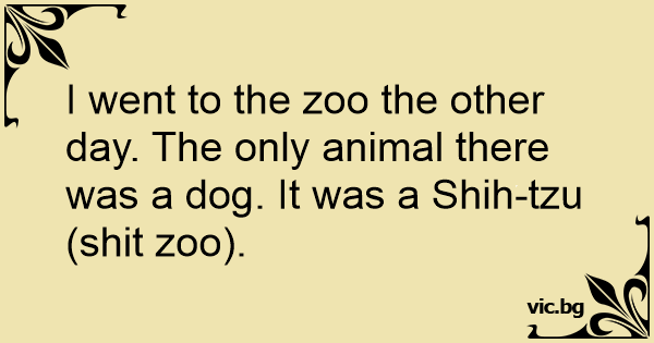 I went to the zoo the other day. The only animal there was a dog. It was a Shih-tzu (shiт zoo).