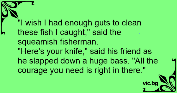 "I wish I had enough guts to clean these fish I caught," said the squeamish fisherman.